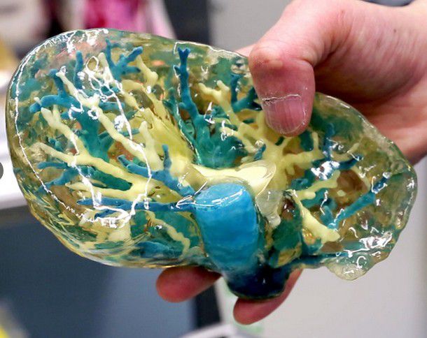 我們現(xiàn)在就來看一下,近兩年來3D打印技術在醫(yī)療領域的兩件成功案例。據報道,在2017年7月14日,蘇黎世瑞士聯(lián)邦理工學院的科學家已經利用3D打印技術成功制作出了硅膠人造心臟,這個人造心臟重量是390克擁有左右心室,通過空氣壓縮腔室來模擬肌肉收縮進行泵液,自誕生來持續(xù)跳動了3000次,“存活”了45分鐘時間。據研發(fā)人員稱,這個模型不是為了立即作為替代心臟植入,而是為人造心臟研究提供新的方向。