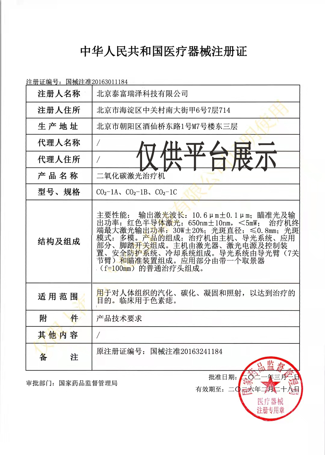 注冊證編號:國械注準(zhǔn)20163241184