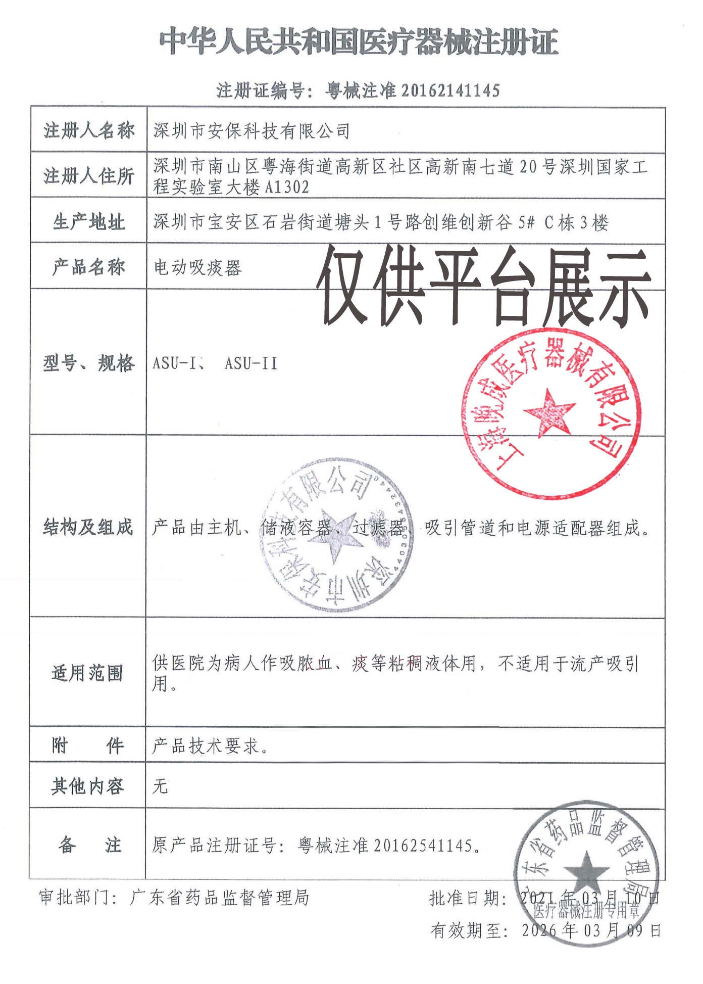 產(chǎn)品名稱 : 深圳安保 電動(dòng)吸痰器 ASU-I